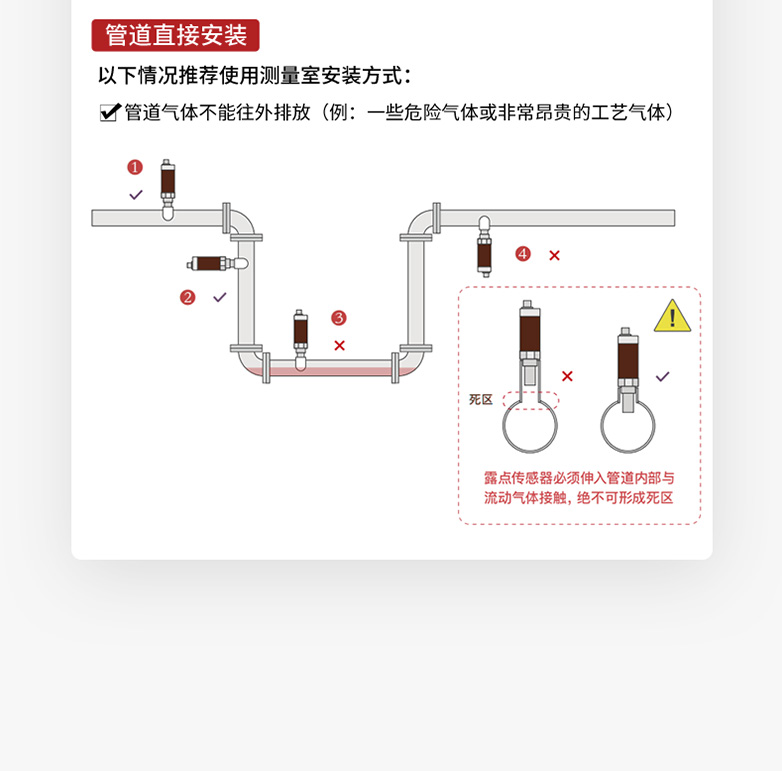当测量介质的露点温度>-40℃td,高分子电容传感器对比于其他类型的传感器在该区间无论是精准度、响应速度还是长期稳定性均为最优,并且性价比最高; 革新的自校准电路设计,能自动补偿温度、污染、老化引起的电路漂移,提供长期可靠的高精度测量; 创新的温度补偿算法及出厂前多点温度的补偿校验,大大改善了传感器的温度漂移,保证了宽温度范围内的高精度测量。