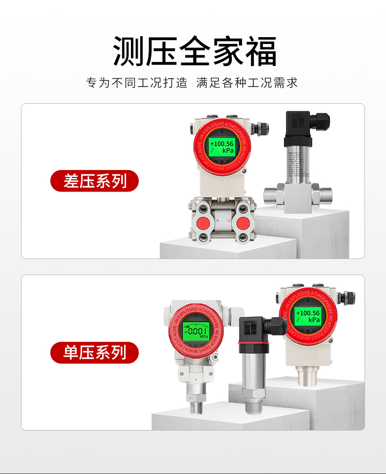 差压变送器采用了高性能 SMI 硅压阻式压力芯片为敏感核心,外壳为合金铝,内部的专用集成电路将传感器毫伏信号转换成标准电流信号,可以直接与计算机接口卡、控制仪表、智能仪表或 PLC 等方便相连。运距离传输可以采用电流输出方式。广泛应用于锅炉送风、井下通风等电力、煤炭行业过程控制领域。