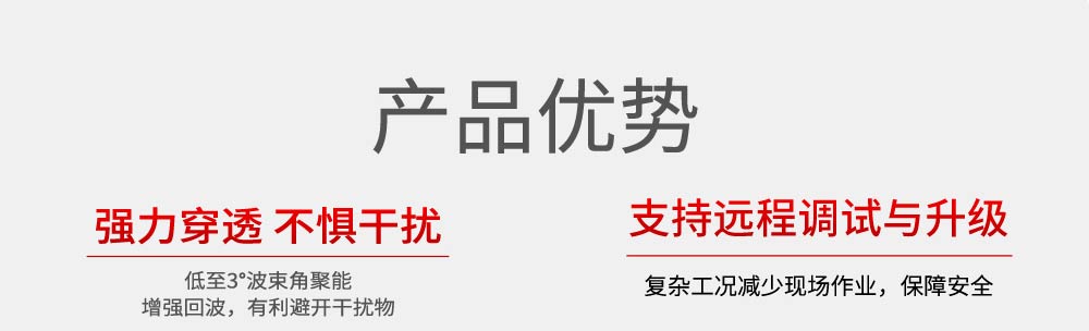 本产品波束能量低,对人体及环境均无伤害,还具有不受介质比重的影响、不受介电常数变化的影响、不需要现场校调等优点,广泛应用江河、水库、湖泊、灌渠、河道等自然水域水文监测场合。