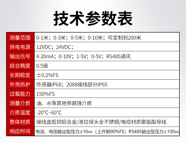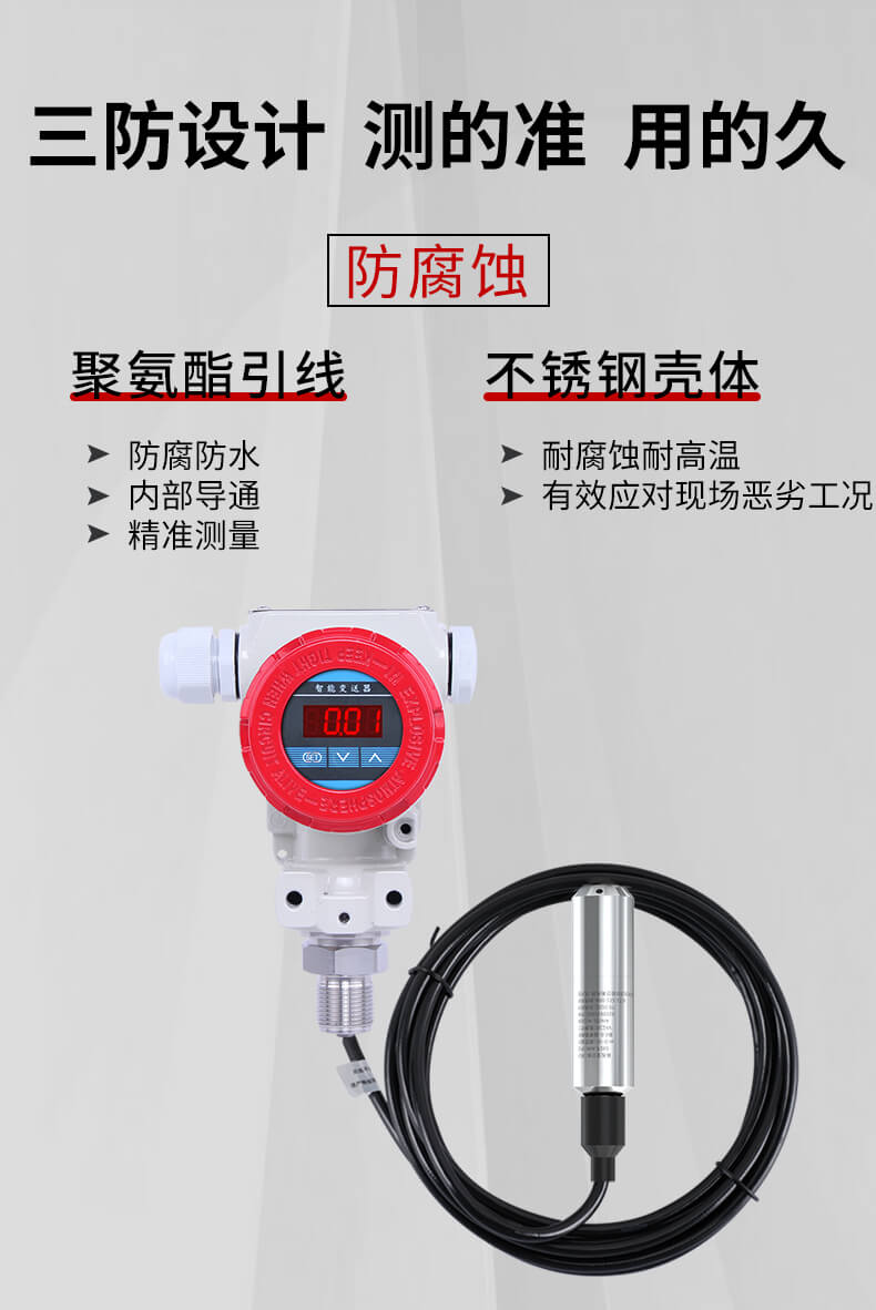 2.较普通投入式液位计而言,产品精度有明显的提升,抗干扰能力强
